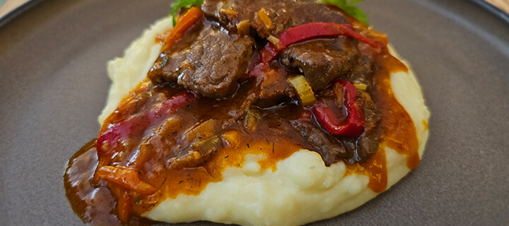 Jautienos troškinys su daržovėmis ir bulvių koše – 7,50 €