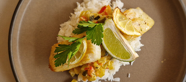 Kepta dienos žuvis su citrina, žalumynais ir ryžiais – 7,50 €