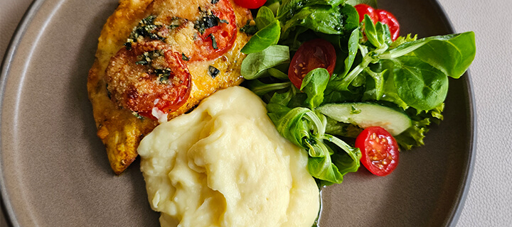 Šiandienos šefo pietūs – gaivi rūgštynių sriuba, sultinga vištiena užkepta pomidorais ir sūriu su bulvių koše bei šviežiomis salotomis, o prie jų – klasikinis silkės užkandis su marinuotais svogūnais. Skoniai, kurie džiugina tradicija ir jaukumu.