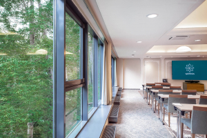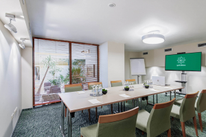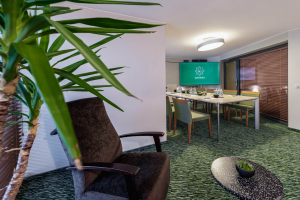 В нашем мире из стали и бетона гармония природы необходима каждому сердцу. Поэтому в конференц-залах установлены панорамные окна, открывающие вид на зелёную панораму Друскининкая или на ofiSPA и зону отдыха. Здесь зеленеют деревья, цветут цветы и журчит фонтан – это место, где можно работать индивидуально или в небольших группах. А главное – здесь участников конференции ждёт всеми любимый ритуал – кофейные перерывы с манящим ароматом кофе и выпечкой от мастеров ресторана LABAI.