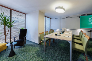 Этот небольшой (21 м²) уютный конференц-зал с видом на зону ofiSPA и отдыха вмещает до 12 человек и приглашает Вас найти вдохновение в незнакомых культурах и понять то, что свято для каждого человека - как личности и как сотрудника. Тьюринга - это религиозный, священный предмет австралийских аборигенов: продолговатый камень или кусок дерева, украшенный ритуальными и мифологическими орнаментами. Мы искренне желаем Вам создать свой собственный талисман «тьюринга» во время конференции – как посредника между личностью и корпоративной культурой, между тактическим планом и амбициозным видением.
