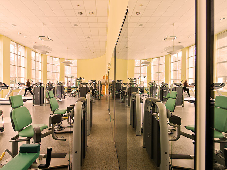 Рекомендуем носить только предназначенную для этого одежду и обувь – в бассейне и банном комплексе специальные шлепанцы, в тренажерном зале – спортивную обувь.